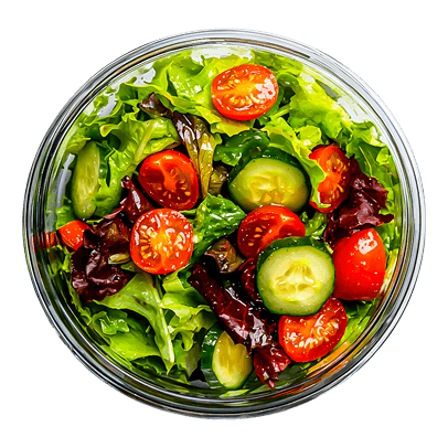 • Lettuce, Tomato, Cucumber, green and red pepper, Avocado, thyme & Halloumi Cheese dressed with olive oil and lemon